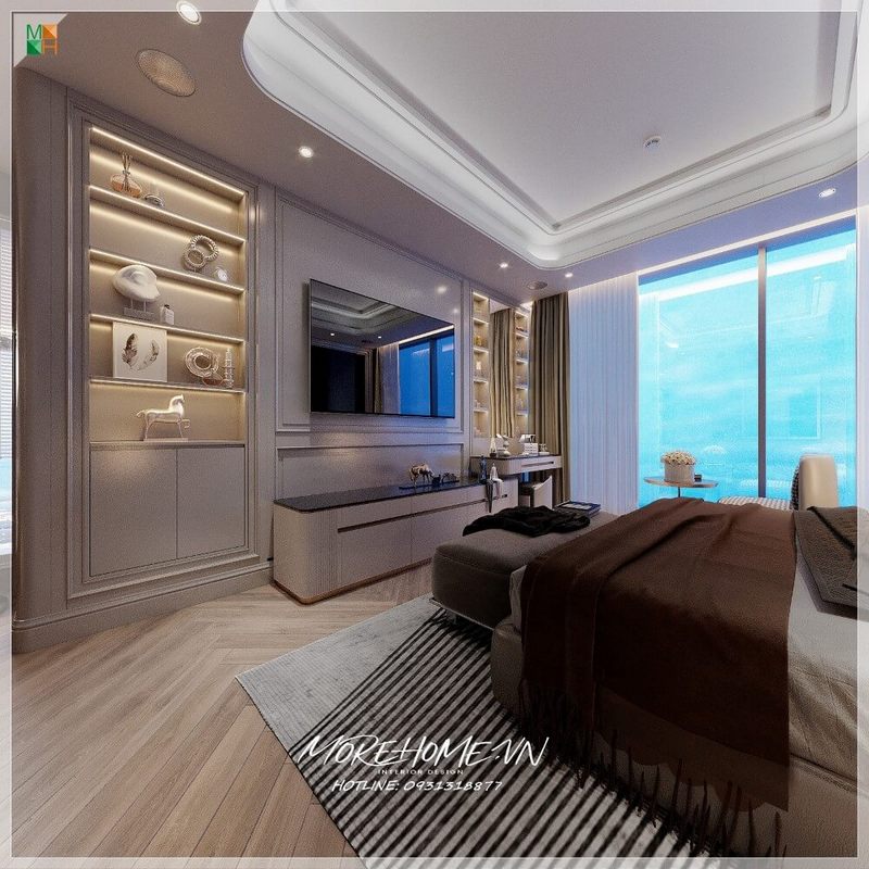 Kệ tủ âm tường gỗ tự nhiên màu trắng hiện đại trưng bày sắp xếp những món đồ yêu thích trang trí tô điểm cho không gian.